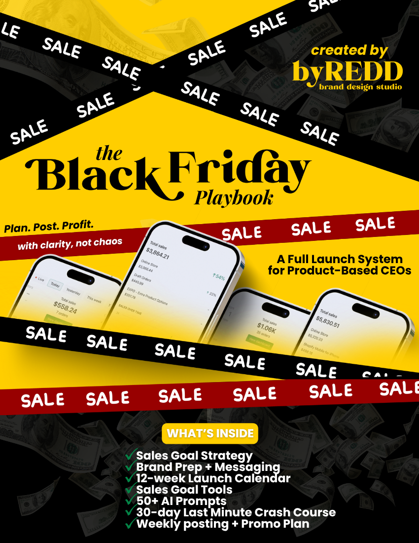 The Black Friday Playbook™ is more than an ebook—it’s your full 12-week launch system for selling smarter (and more profitably) during the busiest shopping season of the year.